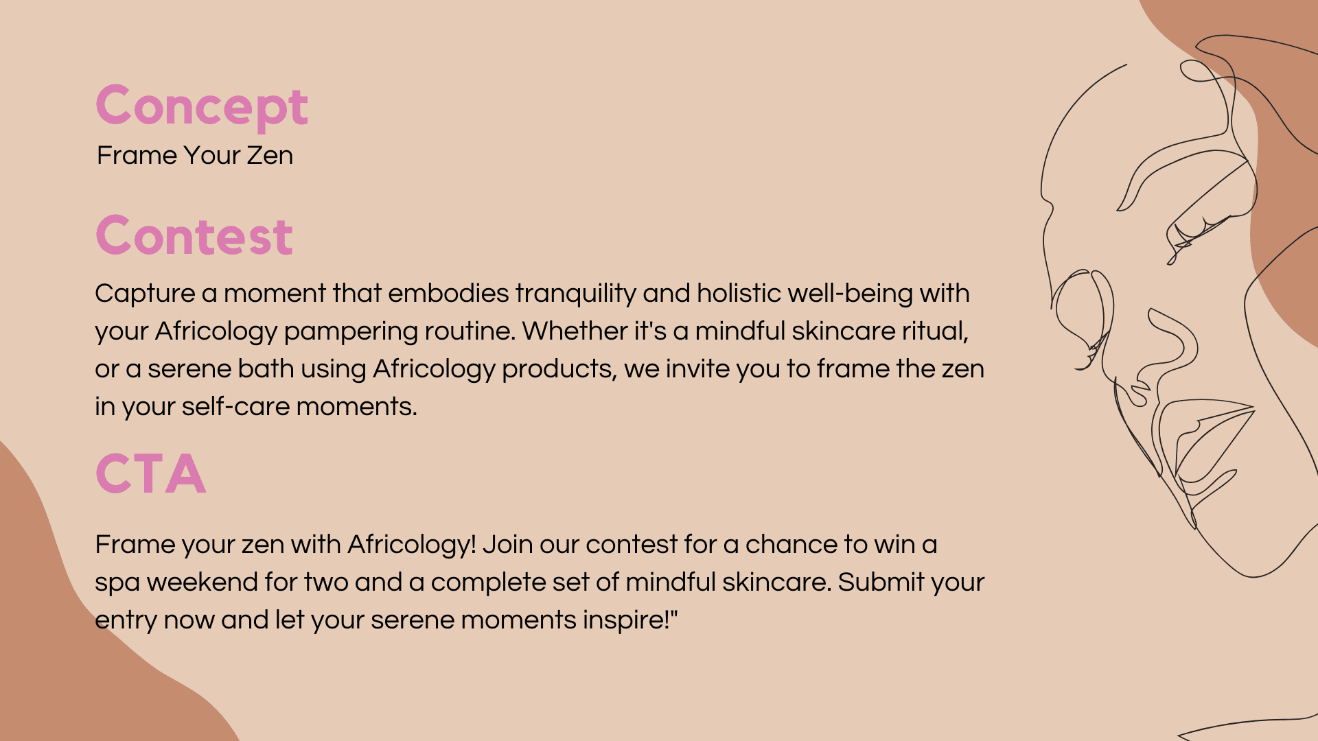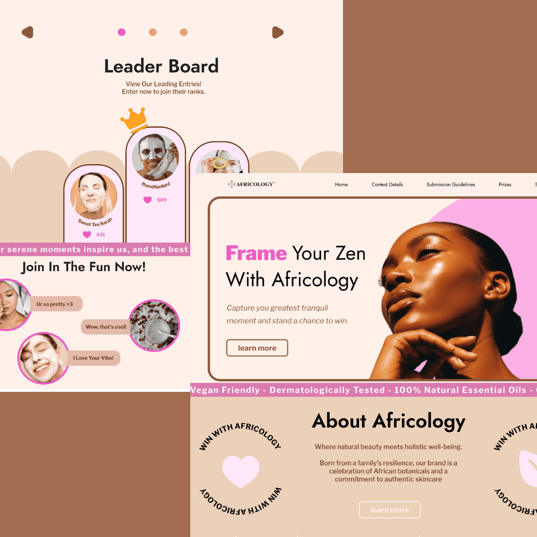 A mindful, nature-inspired digital contest designed for Africology, inviting users to “Frame Their Zen” through a calm, intuitive experience rooted in holistic beauty and self-care.