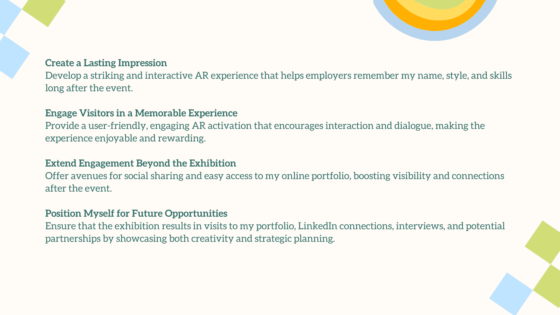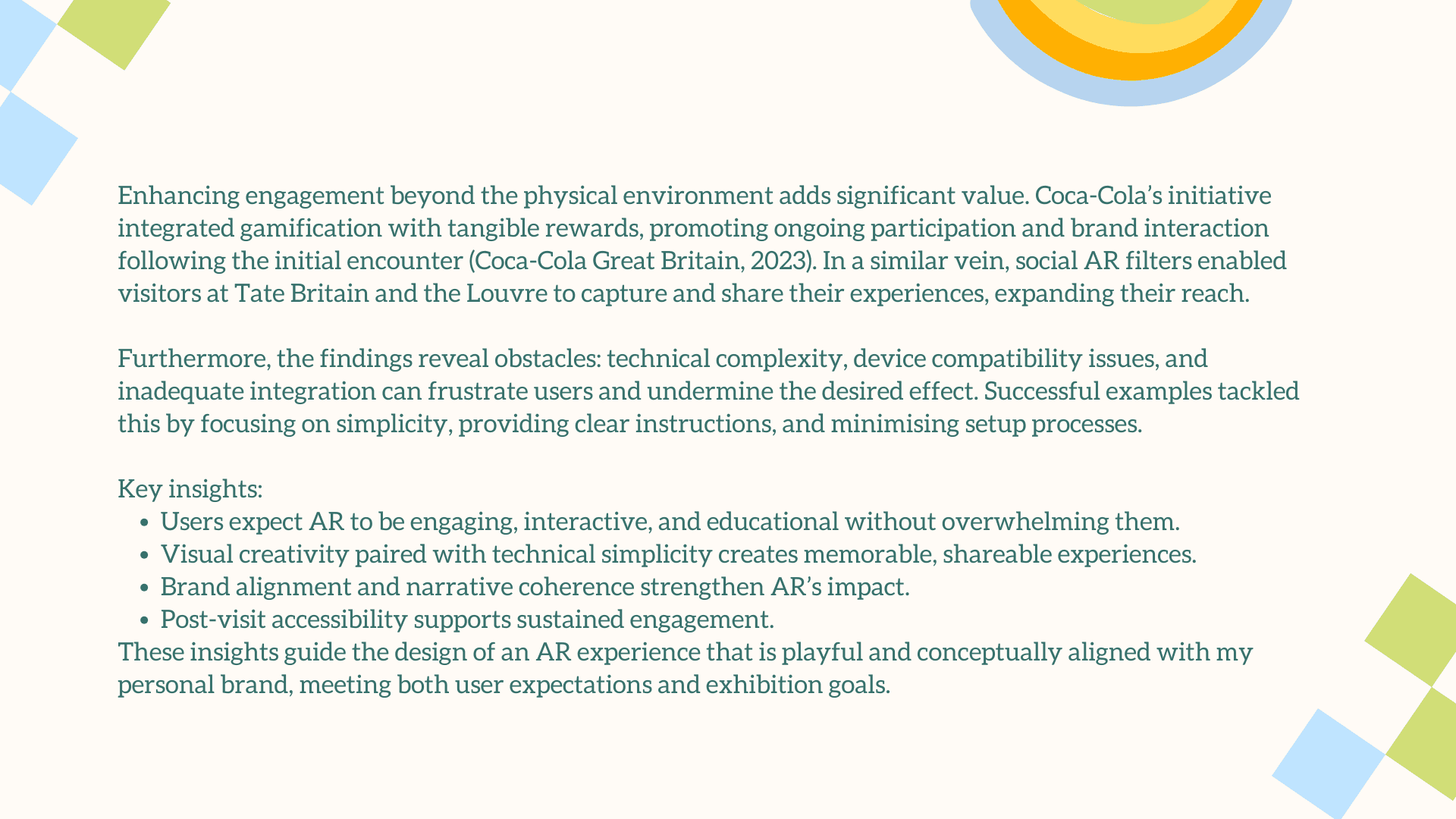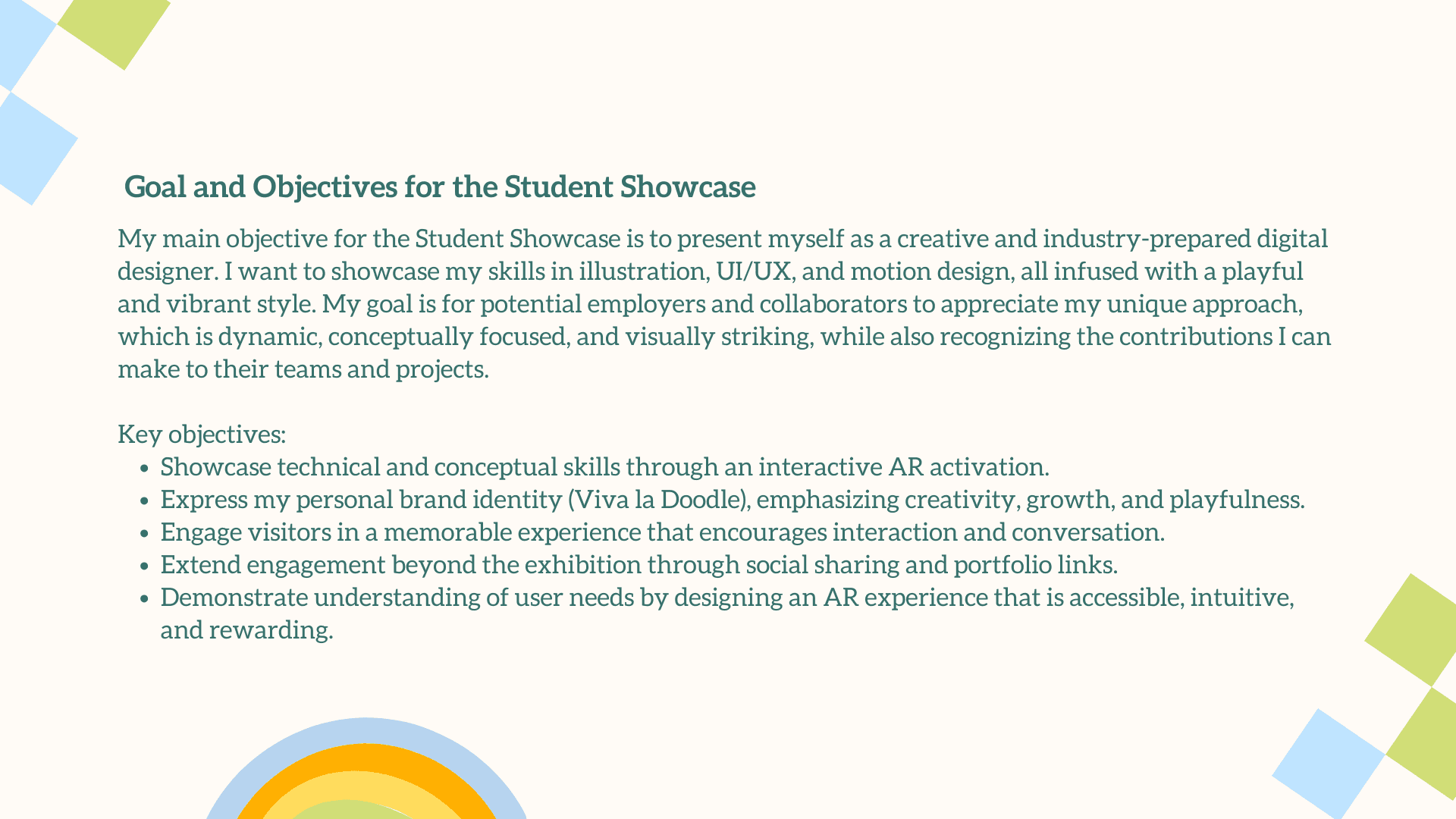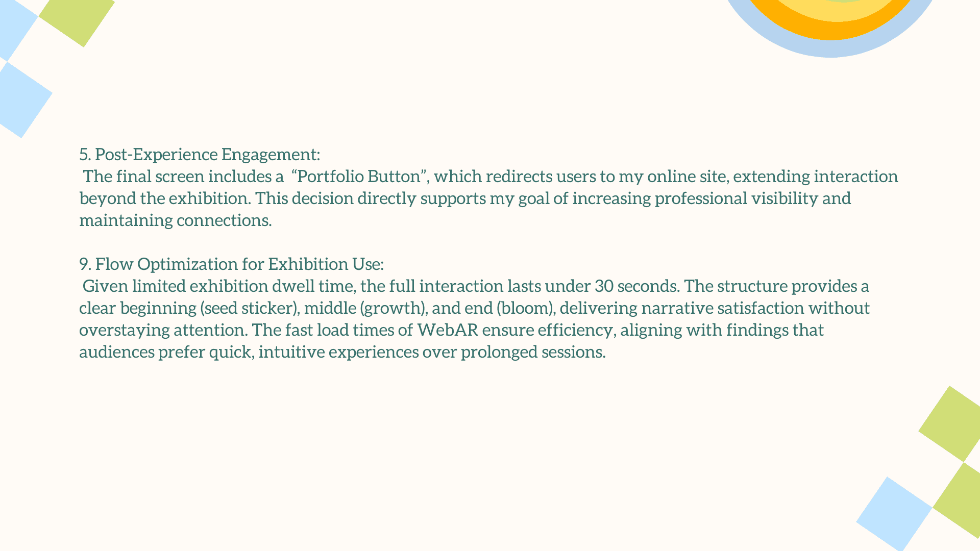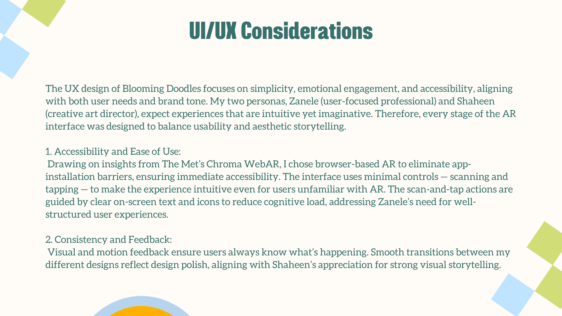 The main challenge was translating a deeply personal, illustrative style into an engaging AR experience without losing its charm and emotional warmth. The interaction had to feel simple, intuitive, and instantly rewarding for users who may be unfamiliar with AR. Balancing visual playfulness with clear UX, creating animations that enhanced rather than overwhelmed the doodles, and ensuring each plant symbol meaningfully represented your growth as a designer were essential. The goal was to craft an AR moment that felt magical, yet purposeful.